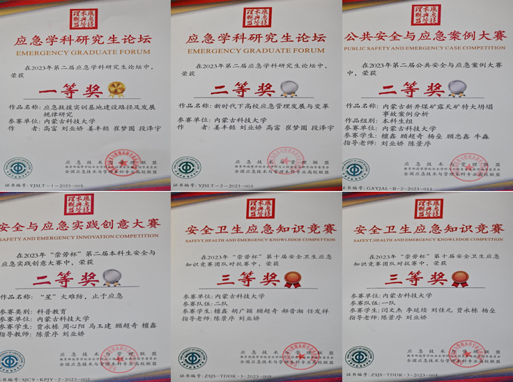 bevictor韦德国际研究生高富、姜丰懿分别获得应急技术与管理联盟第二届应急学科研究生论坛一等奖和二等奖;贾永栋、周心阳、马玉见、顾超奇、檀鑫获“崇劳杯”第二届本科生安全与应急实践创意大赛科普教育类二等奖;檀鑫、顾朝奇、杨垒、顾忠鑫、牛淼获得应急技术与管理联盟第二届公共安全与应急案例大赛本科生组二等奖;闫文杰、李延续、刘佳元、贾永栋、杨垒组成的一队与檀鑫、胡广颖、顾朝奇、郝晋湘、任发祥组成的二队获得“崇劳杯”第十届安全卫生应急知识竞赛团队对抗赛三等奖。