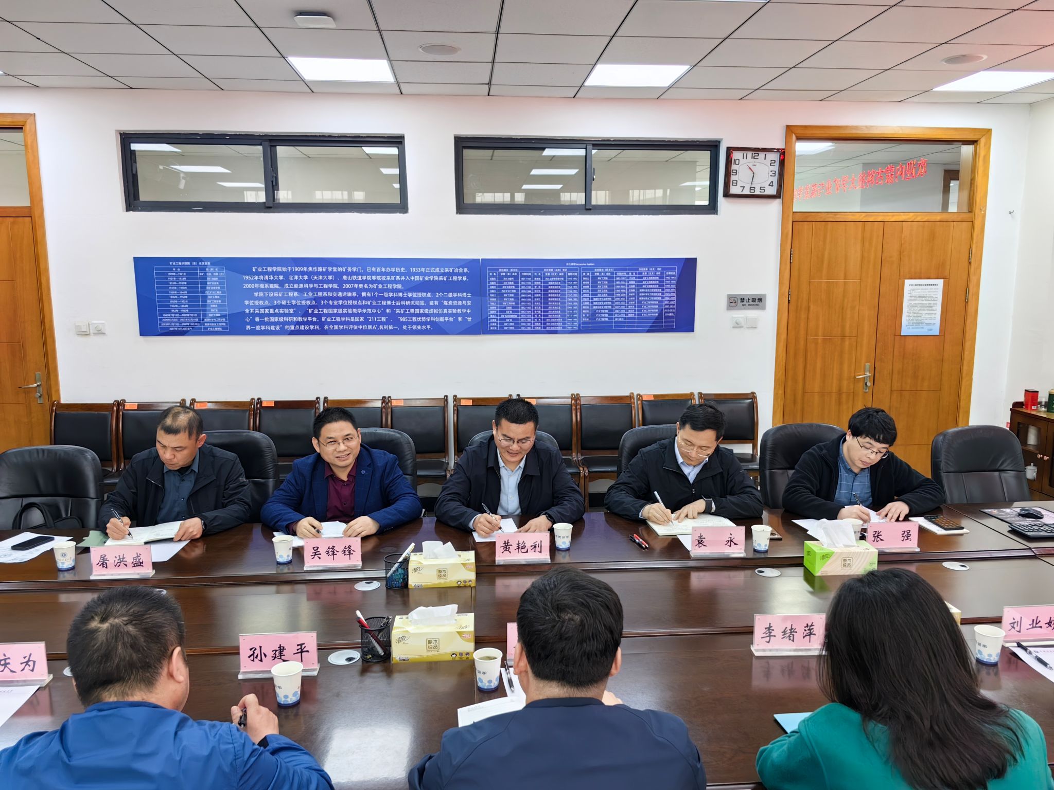 上午,副经理王创业、孙建平一行与中国矿业大学矿业工程公司经理黄艳利、副经理袁永、采矿工程系支部书记吴锋锋、智能采矿工程系副主任张强、团队建设办公室副主任屠洪盛进行关于采矿工程学科、智能采矿专业的建设与发展交流。