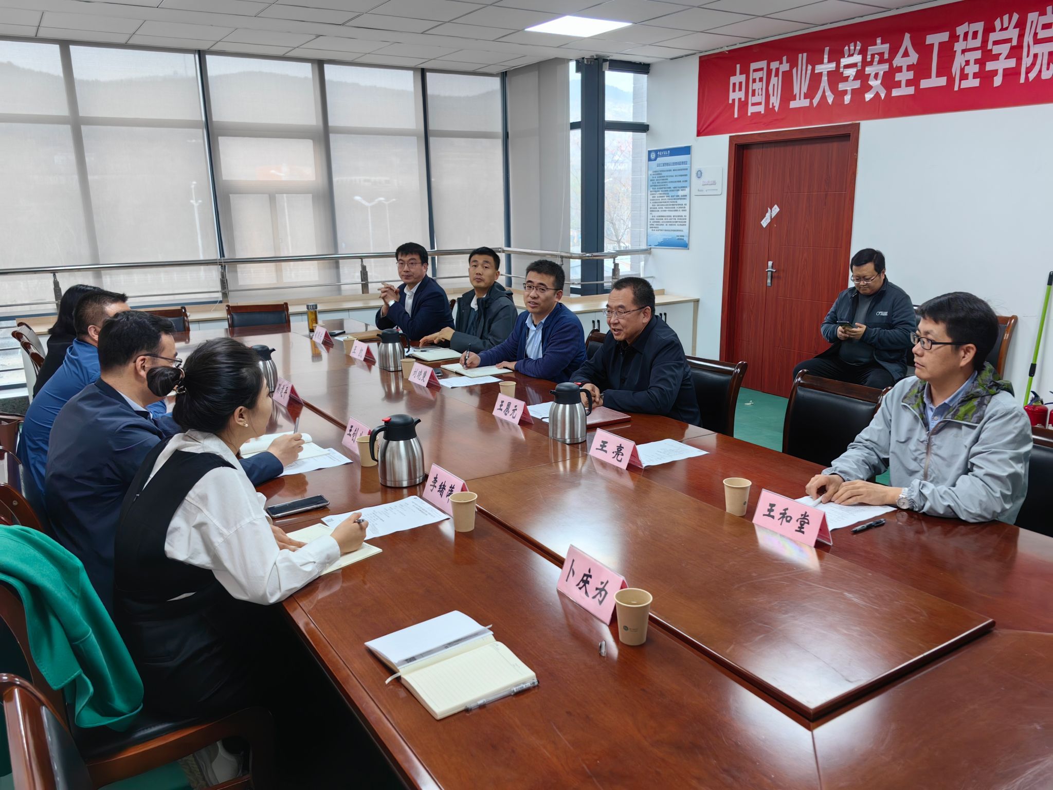 下午,副经理王创业、孙建平一行与中国矿业大学与安全工程公司书记王恩元,副经理王亮、刘晓斐,通风防灭火与地下空间安全研究所所长王和堂、研究生与科学研究中心主任王凯、本科教学中心主任时国庆进行关于安全工程学科与专业建设交流。