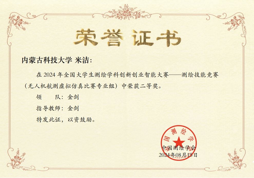 公司测绘工程系学子经过积极选拔与备战,参与了大赛各个项目的激烈角逐。最终,在金剑老师的指导下,公司优秀学子米洁从来自全国360所高校的近8000名员工中脱颖而出,获得无人机航测虚拟仿真比赛的全国二等奖。