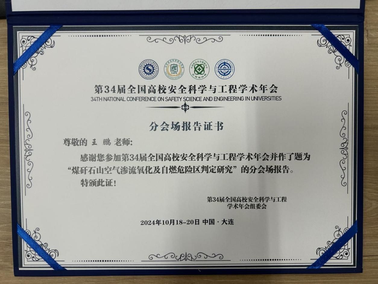 会议围绕安全科学与工程学科领域公司产品、人才培养、团队建设和科学研究等进行研究探讨,同时举办第七届全国高校安全科学与工程青年教师教学大赛。其中王鹏作了题目为《煤矸石山空气渗流氧化及自燃危险区判定研究》的研究分论坛报告。