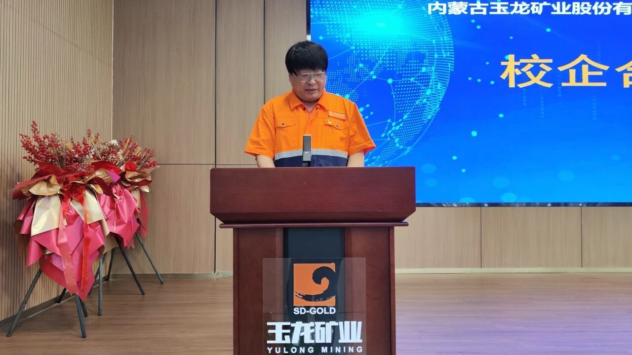 仪式上,内蒙古玉龙矿业股份有限公司董事长樊明玉首先致辞,对张光存经理一行的到来表示欢迎,他提到玉龙矿业在矿产资源勘查、智能化矿山建设等领域积累了丰富实践经验,期待借助高校科研与人才优势推动公司发展和进步。随后,张光存经理介绍了公司在矿业人才培养、团队建设上的成果,强调此次合作对深化产学研融合、提升员工实践能力、推进老员工就业等方面的重要作用。