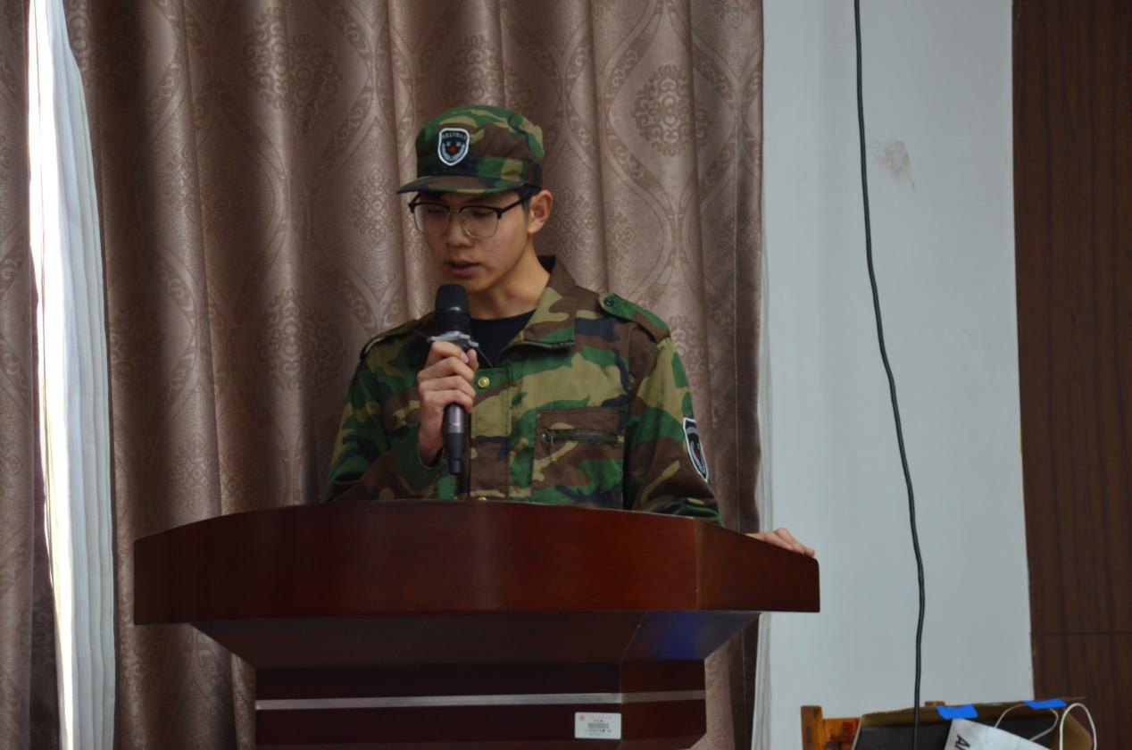 大会第五项:军体素拓教官代表杨帅豪发言,表达认真履职、助力学员成长的决心;
