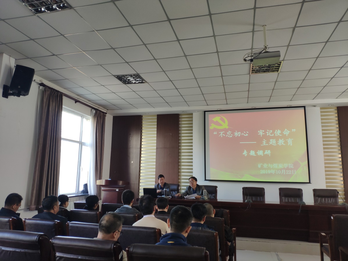 2019年10月22日上午8:30,bevictor韦德国际党总支中心组在实训楼会议室开展“不忘初心、牢记使命”主题教育之专题调研会。