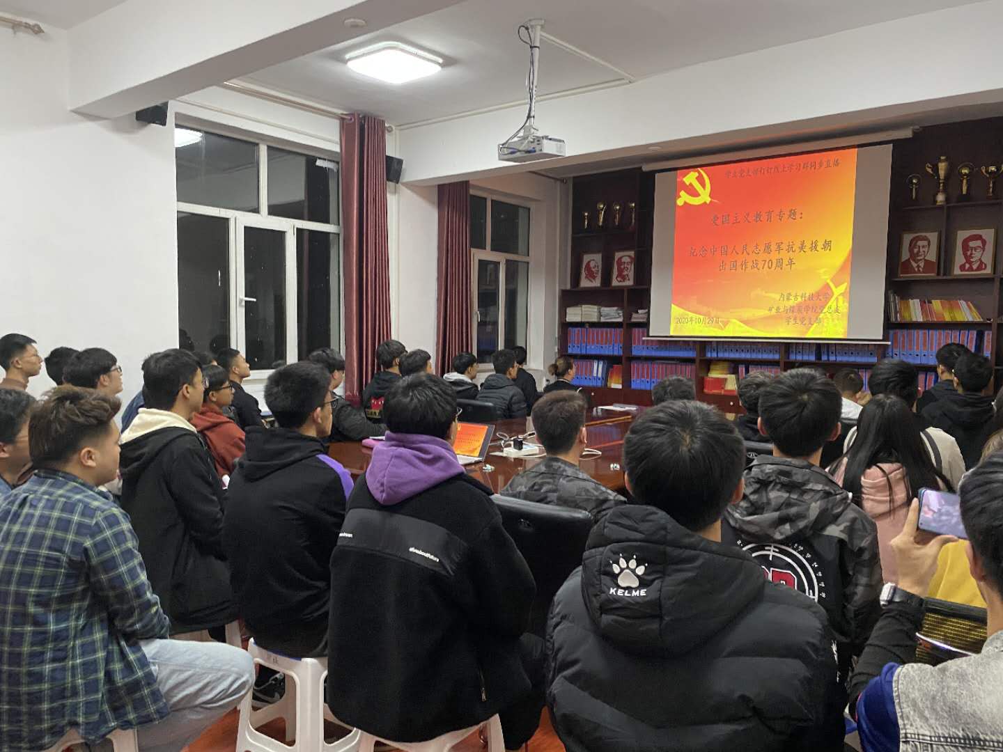 为纪念中国人民志愿军抗美援朝出国作战70周年,bevictor韦德国际党总支于2020年10月29日晚上19:00,在临曦楼二楼党员之家线上线下同步开展专题理论学习活动。本次学习内容是爱国主义教育专题:观看《纪念中国人民志愿军抗美援朝出国作战70周年》视频。