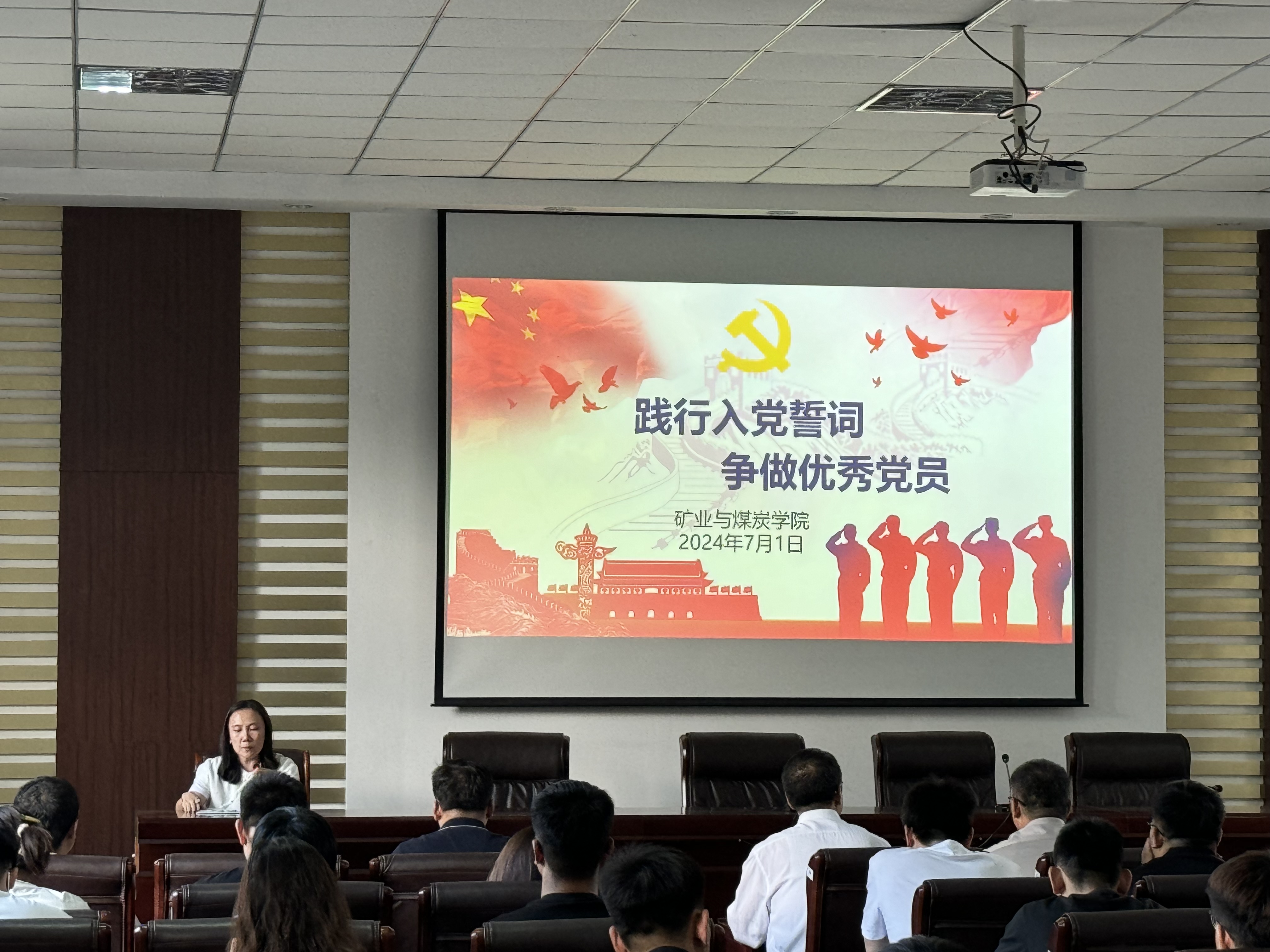 公司党委委员胡显峰带领新党员面向党旗庄严宣誓,其他与会党员重温入党誓词。