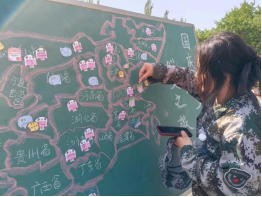 一张地图、一支画笔、一盘颜料,同学们在活动现场尽情书写自己的独特感受,有人写下的是自己的家乡,有人写下的是自己曾去过的地方或是向往的地方。他们将对那里的感受,在那里发生的故事以及美好愿望写下,寄情于纸笔。