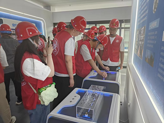 师生在讲解员的带领下,依次参观了温泉酒店、VR安全体验馆、采矿车间、提升机塔台、企业文化长廊,企业上市现场视频、中控调度室等。大家在参观中看到了现代智能化矿山;了解了大中矿业的创业史和奋斗史;体会到战胜自我,创新经营的企业精神;深切感受大中矿业发展的爱国情和报国志。