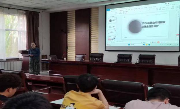 温静雅老师以“2024年就业市场前景及行业趋势分析”为主题展开叙述,向同学们介绍了马斯洛金字塔,告诫同学们要重视职业教育和技能培训。随着技术的不断更新换代,每一个人都要不断学习和提升自己的技能,以适应市场的需求。