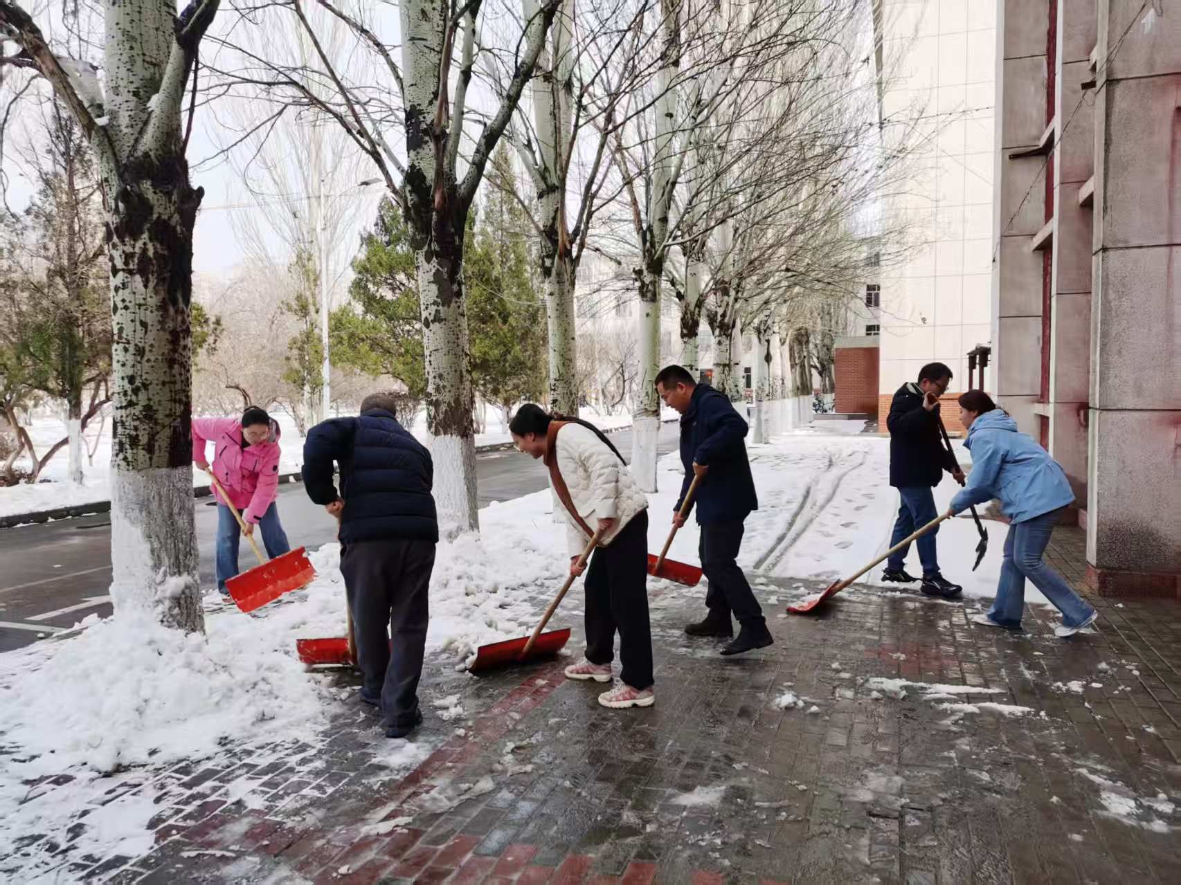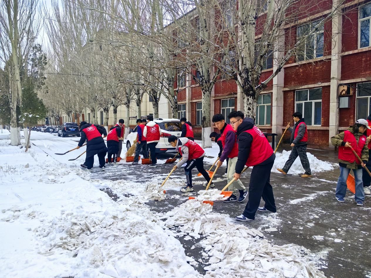 2025年3月4日,bevictor韦德国际组织教师、员工党员、员工干部开展清扫冰雪志愿服务活动,齐心协力清除路面积雪,确保师生出行方便、安全。