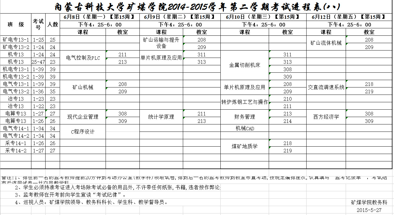 矿煤公司(高职)14-15(2)考试进程表(八)