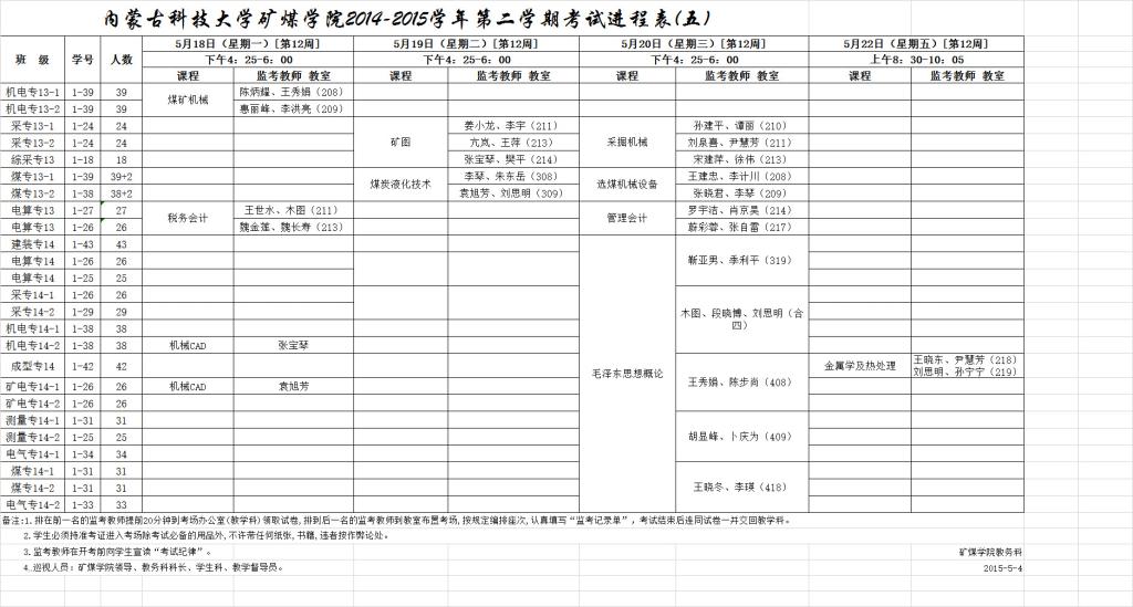 14-15(2)春学期矿煤公司(高职)考试进程表(五)