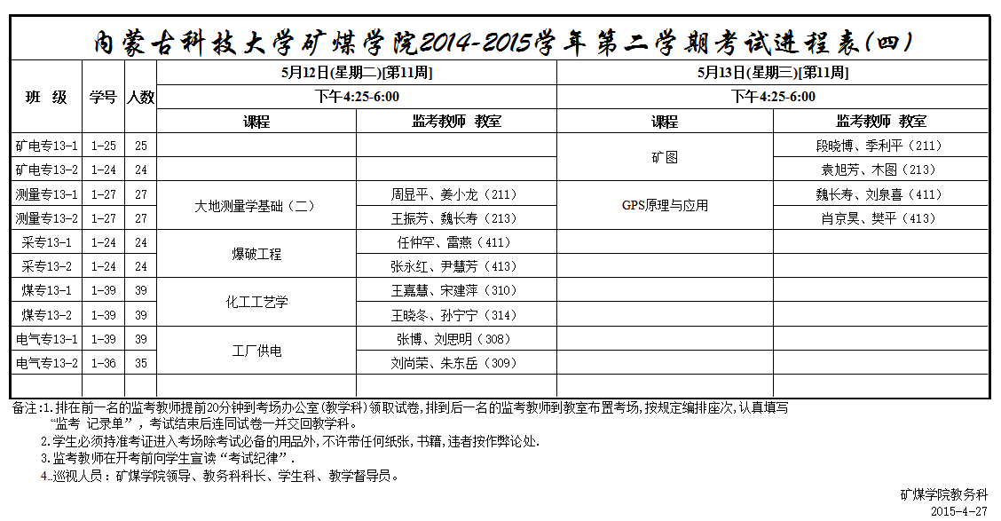 14-15(2)春学期矿煤公司(高职)考试进程表(四)
