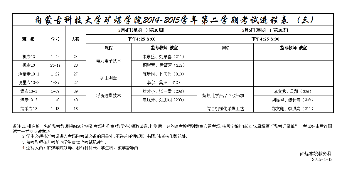 矿煤公司(高职)14-15(2)春学期考试进程表(三)